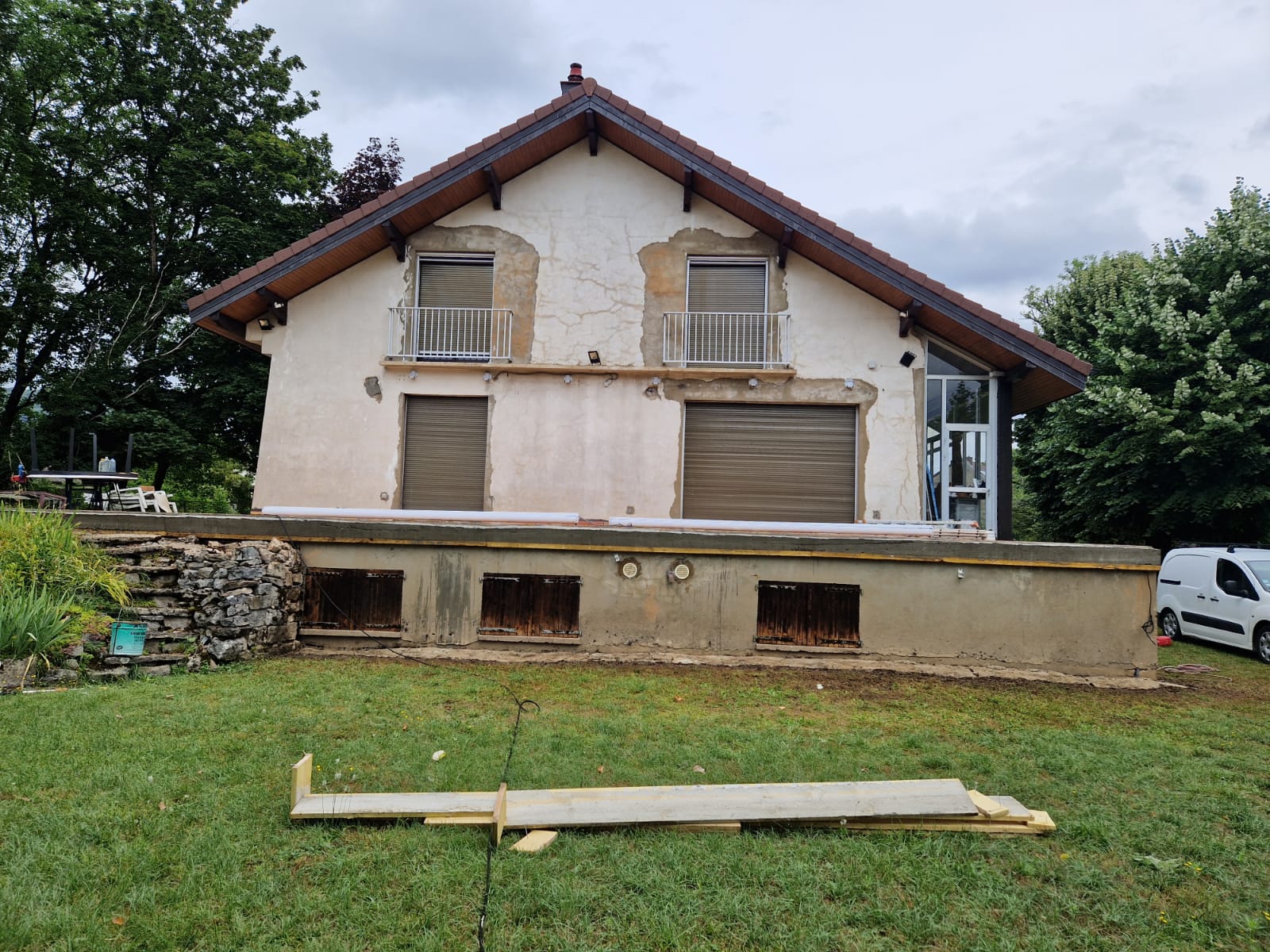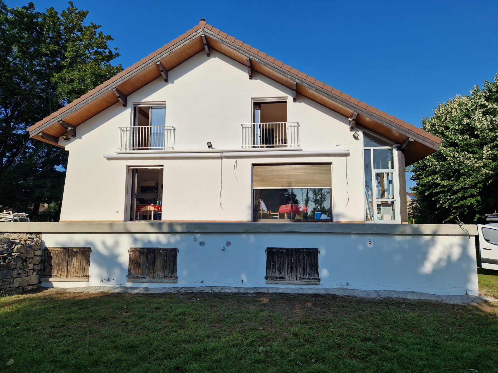 - Application de peintures professionnelles : Nous utilisons des peintures de type Pliolite, acrylique ou siloxane, choisies selon la porosité de votre mur pour laisser respirer le support tout en le protégeant durablement contre les UV et la pluie.